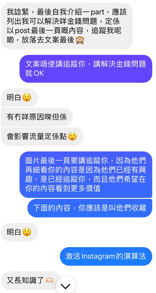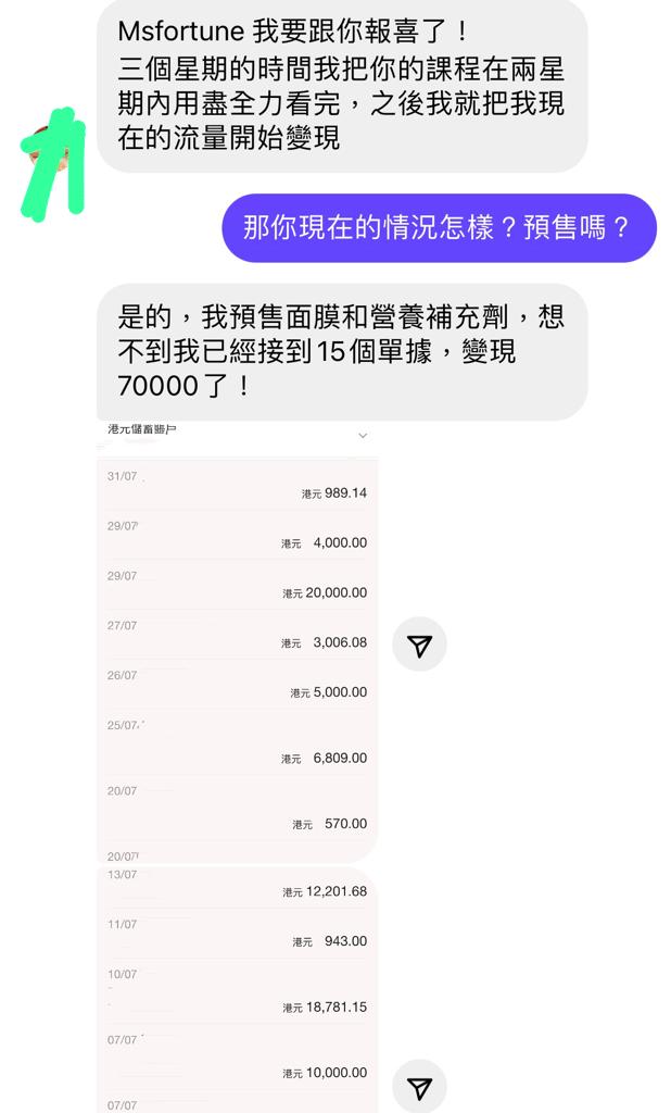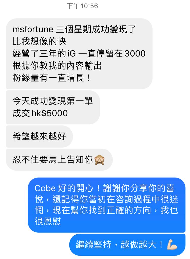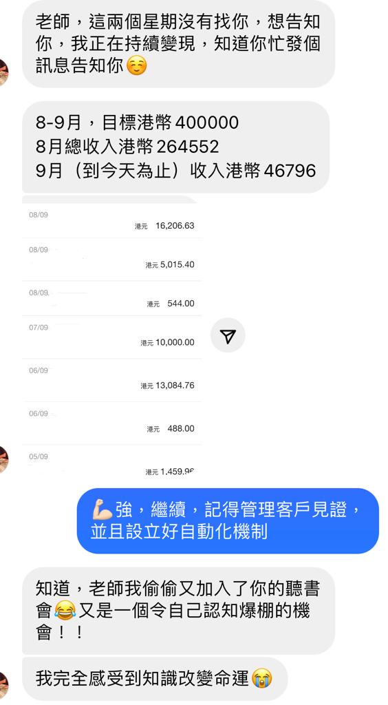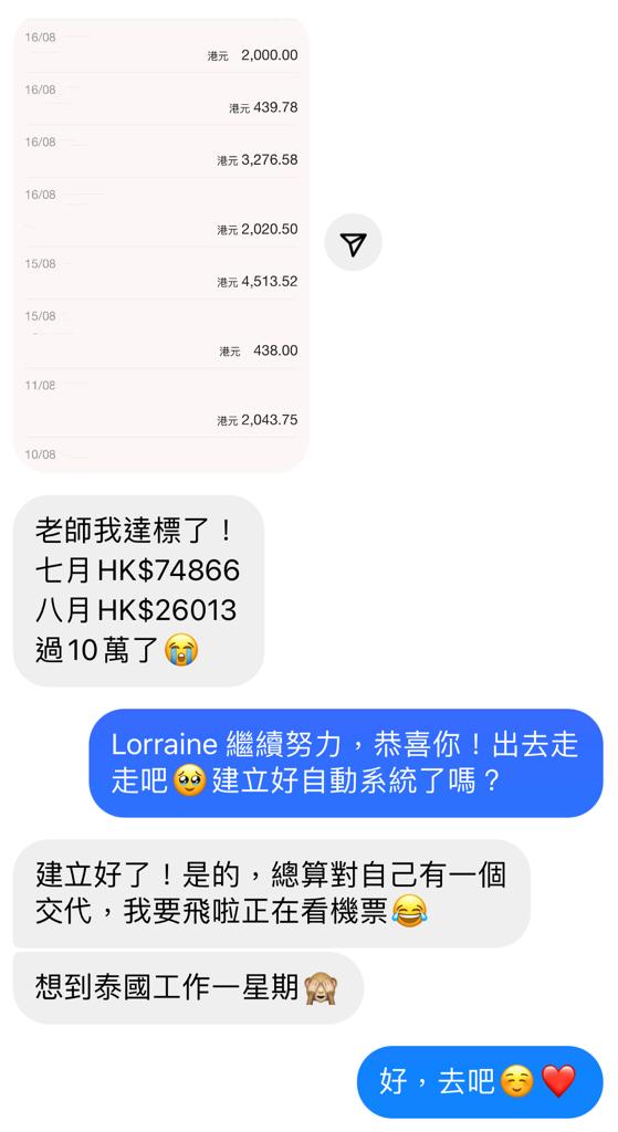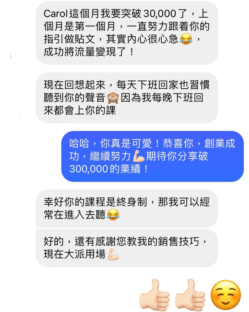 " 多謝Carol打開左我係新媒體上既新認知,利用Social Media賺取被動收入!好有耐性,同埋靚靚既一位全方位教練!"